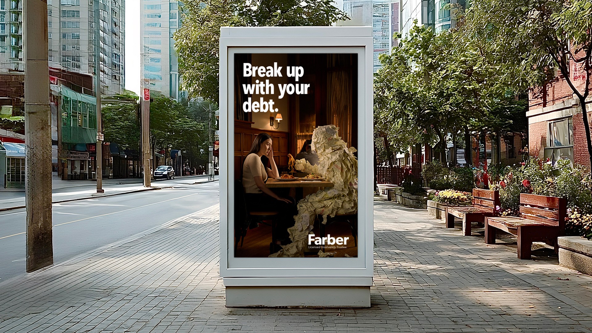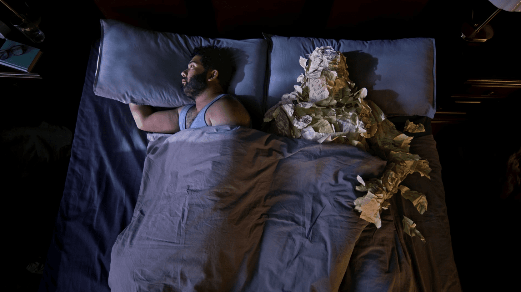 Debt was built as a physical character, constructed entirely from real bills, receipts, and paperwork. Nothing was generated. Nothing was simulated. No AI. The materials were intentional. The results were real. Each scene was crafted around a recognisable toxic relationship behaviour. The scenes were shot as film and stills with the same restraint and intimacy, then translated into radio, where the relationship played out through sound alone. Different formats. Identical behaviour.