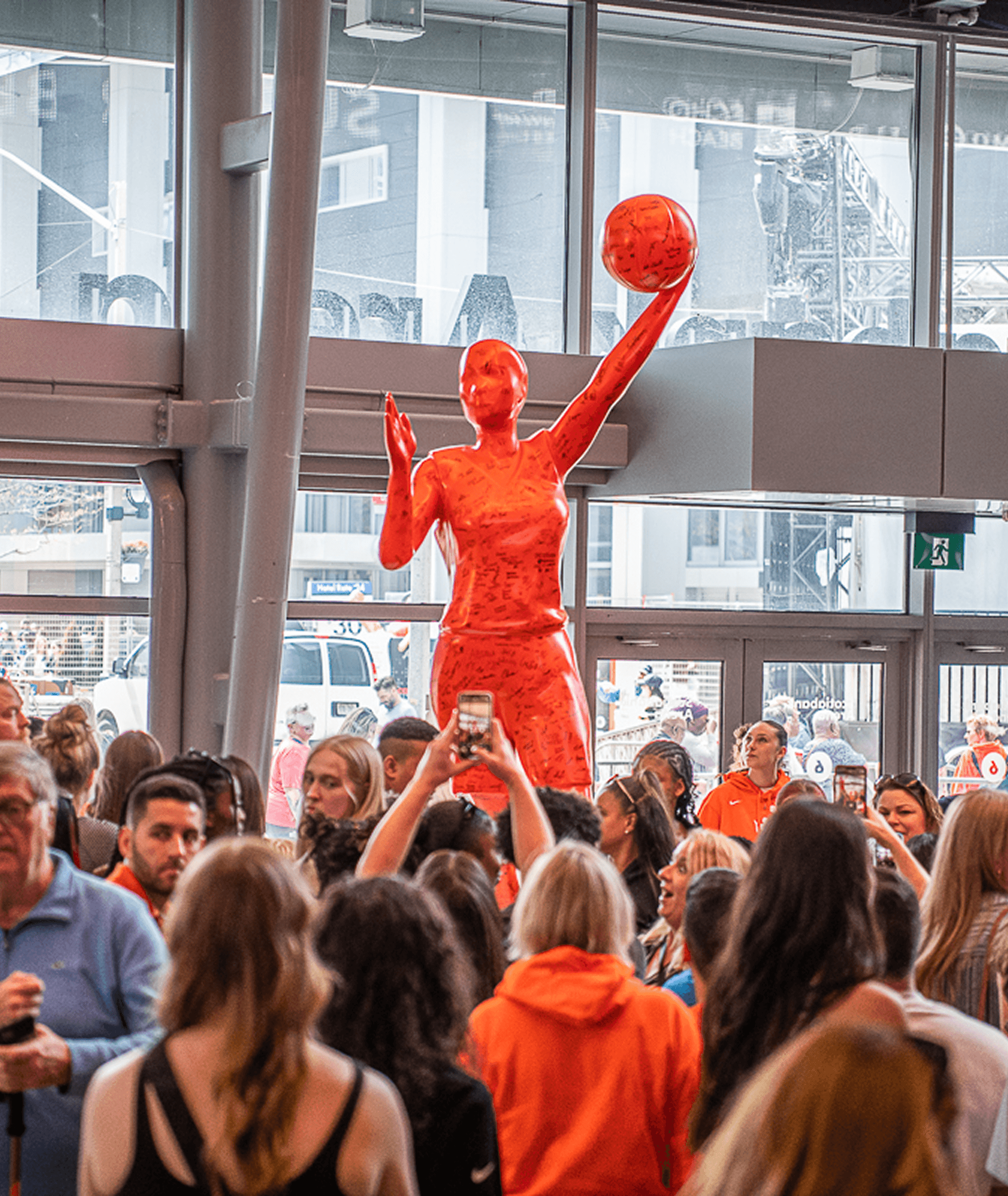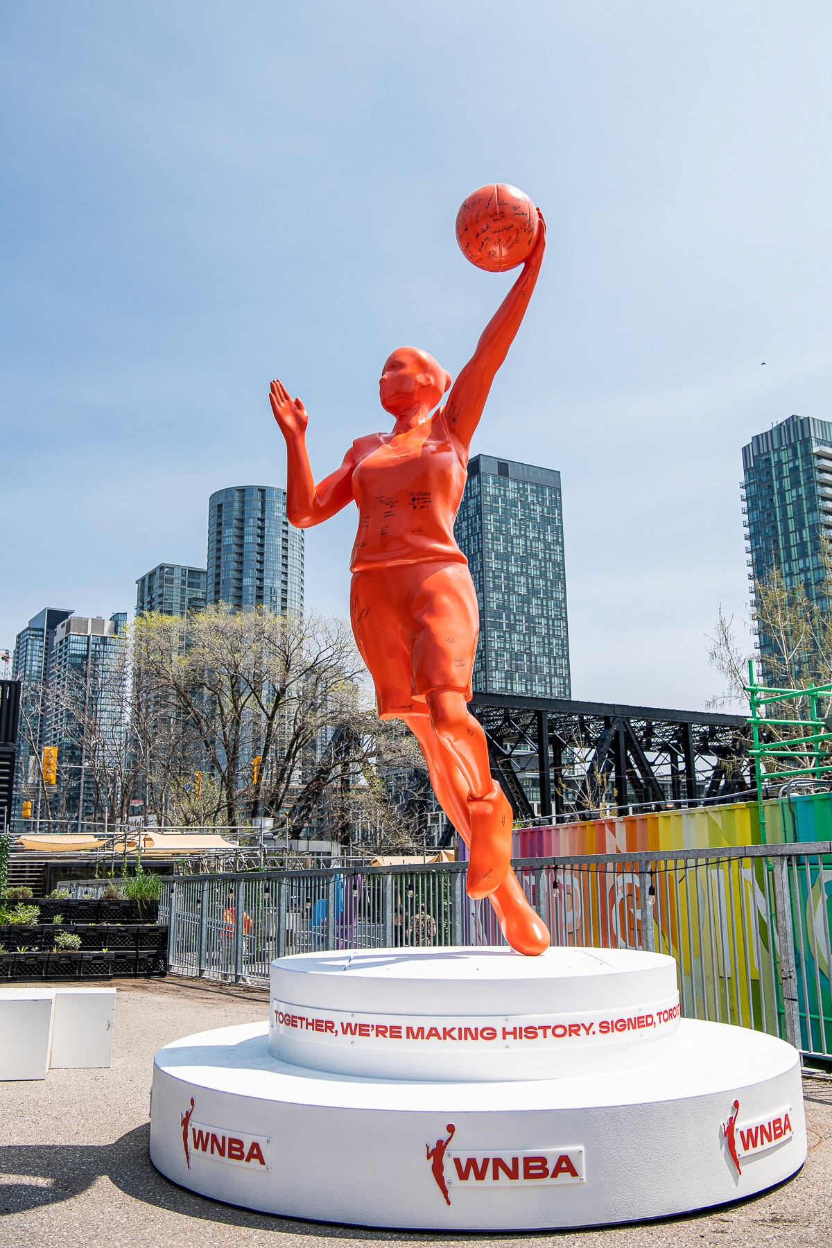 For the first time in WNBA history, we turned the iconic logo into a 3D figure. Weighing over 800 pounds, the 12-foot tall statue traveled around Toronto for one week, from the Stack Market to the CN Tower and places in between, inviting Torontonians young and old to experience her, sign her, and be forever a part of this historic moment.